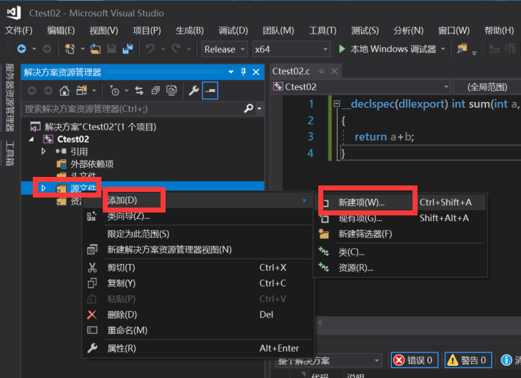 2.源文件中新建项