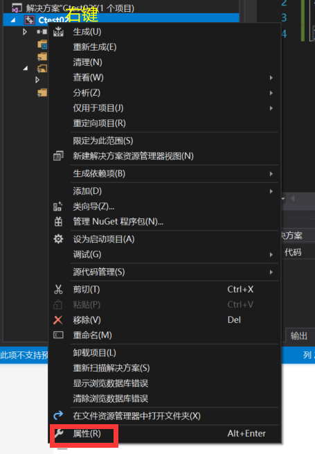 还没完哈,右键你的解决方案,点击属性。